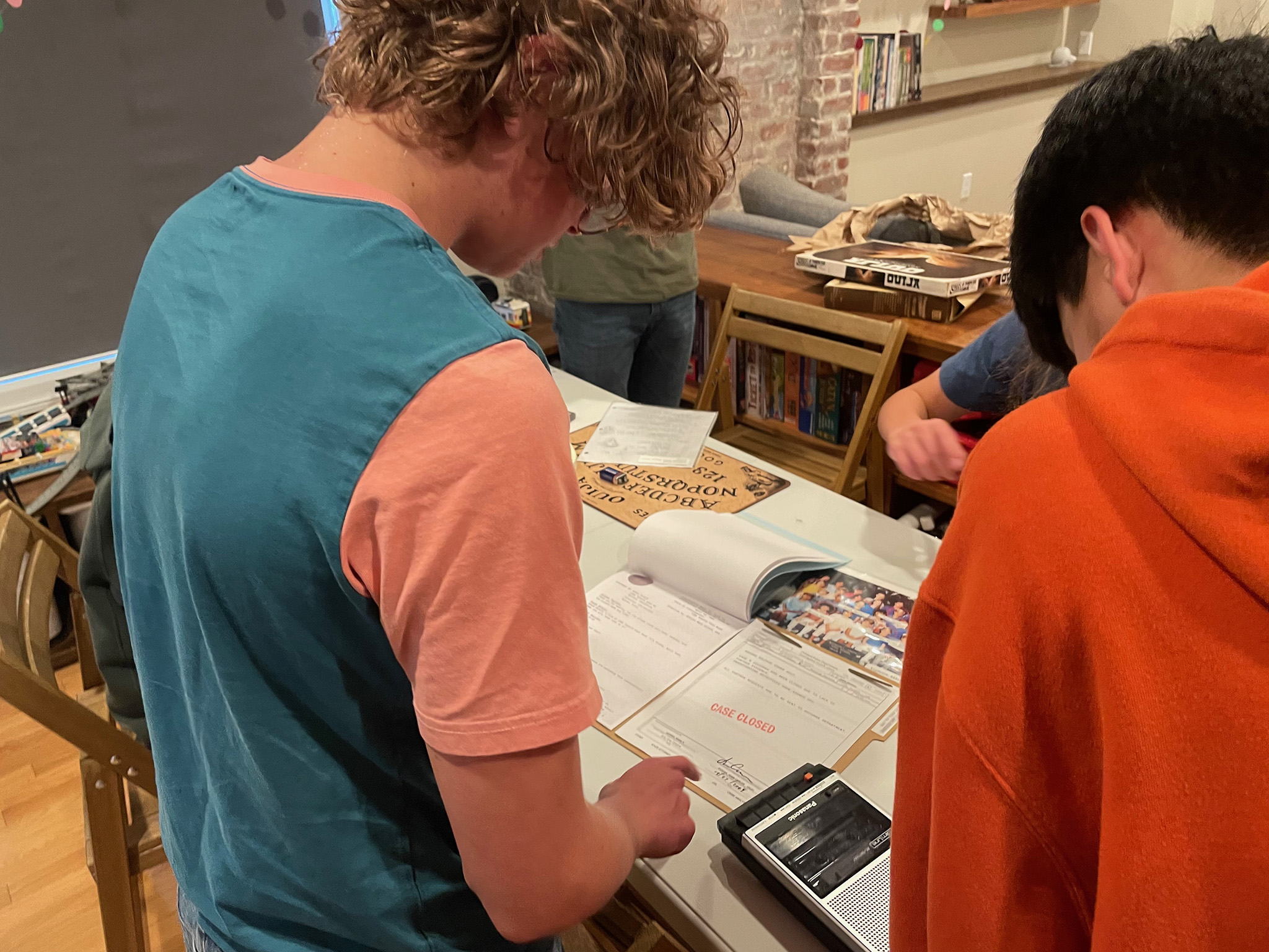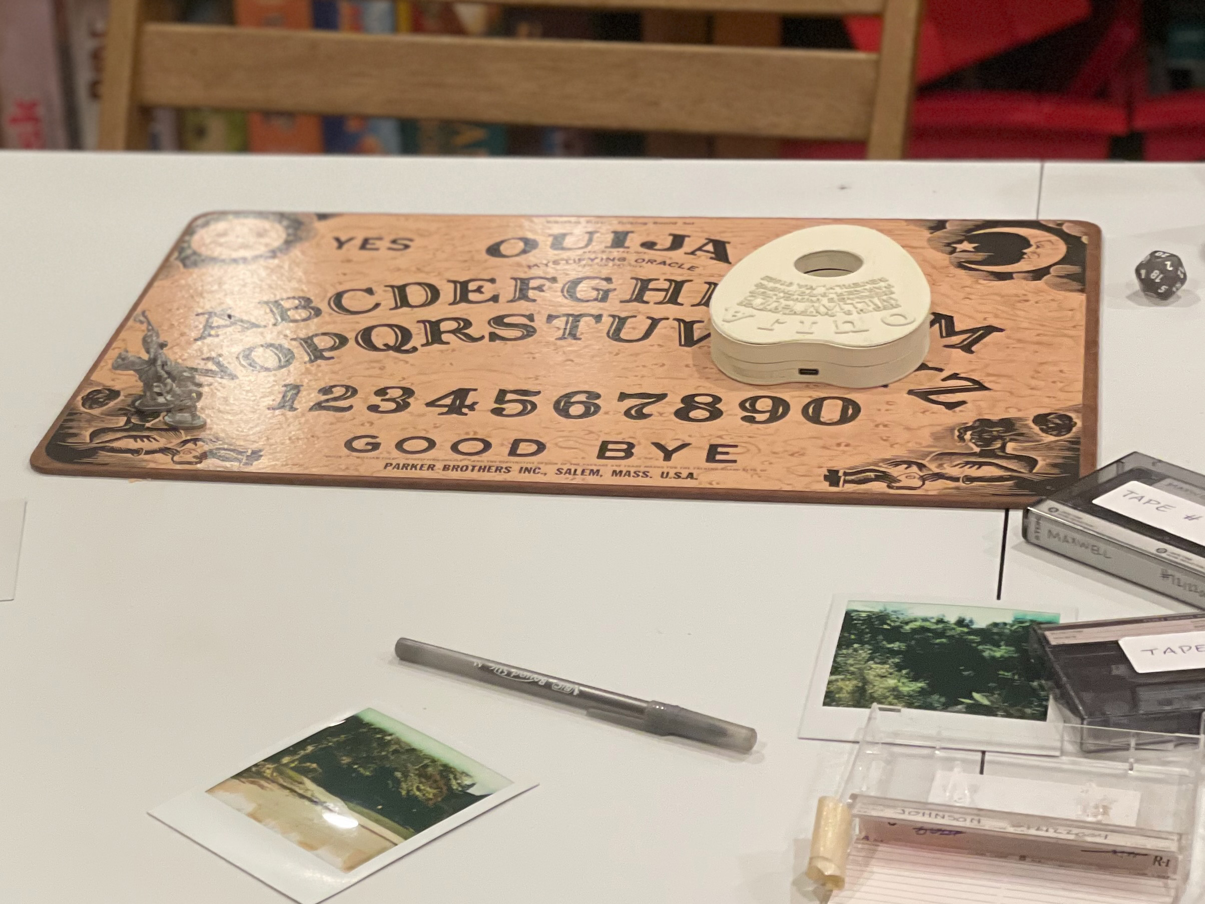 Opening the box, our son and his friends discovered that it was seemingly full of junk. But looking a bit closer, they found Officer Mayview's folder of notes and documents. They found a set of old D&D books, character sheets, and notes from an in-progress D&D campaign for a group called “Dragon's Lair”. As they dug deeper into the box's contents, they also found a stack of cassette tapes and an old cassette player. And below that at the bottom of the box was a worn out Ouija board.