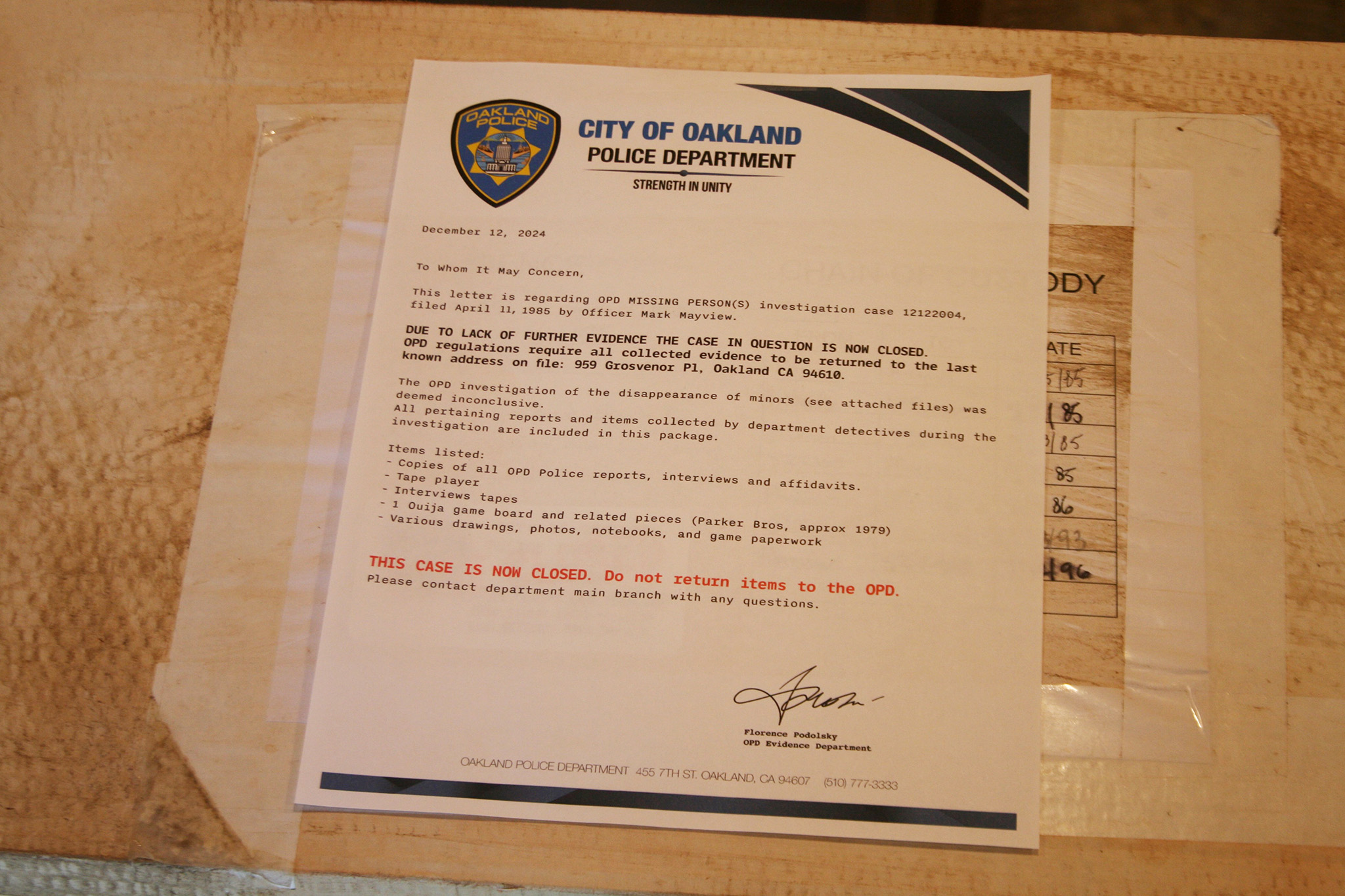 But Oakland is in financial trouble right now, and they don't have the resources to continue a 40 year old missing person's case. So the case was closed, and in a last bit of bureaucratic process, all the property that was collected as evidence was returned to the last known address: our house.
