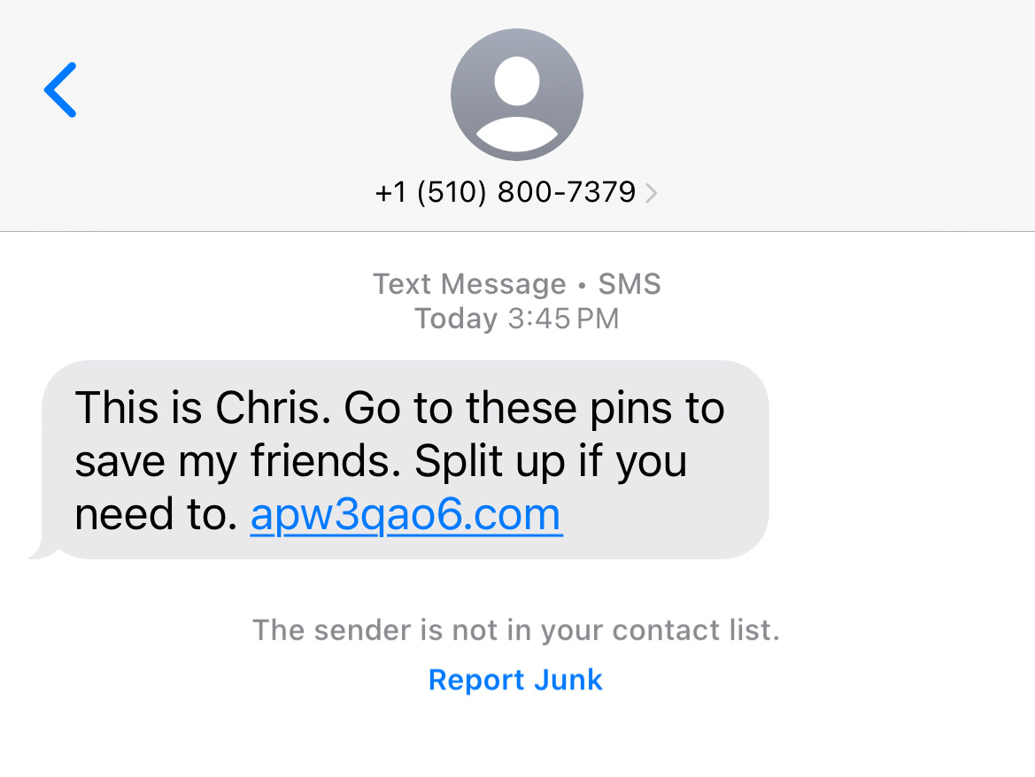 Chris' voice disappeared, our son's phone buzzed. A text message arrived from Chris with a link to a map showing the