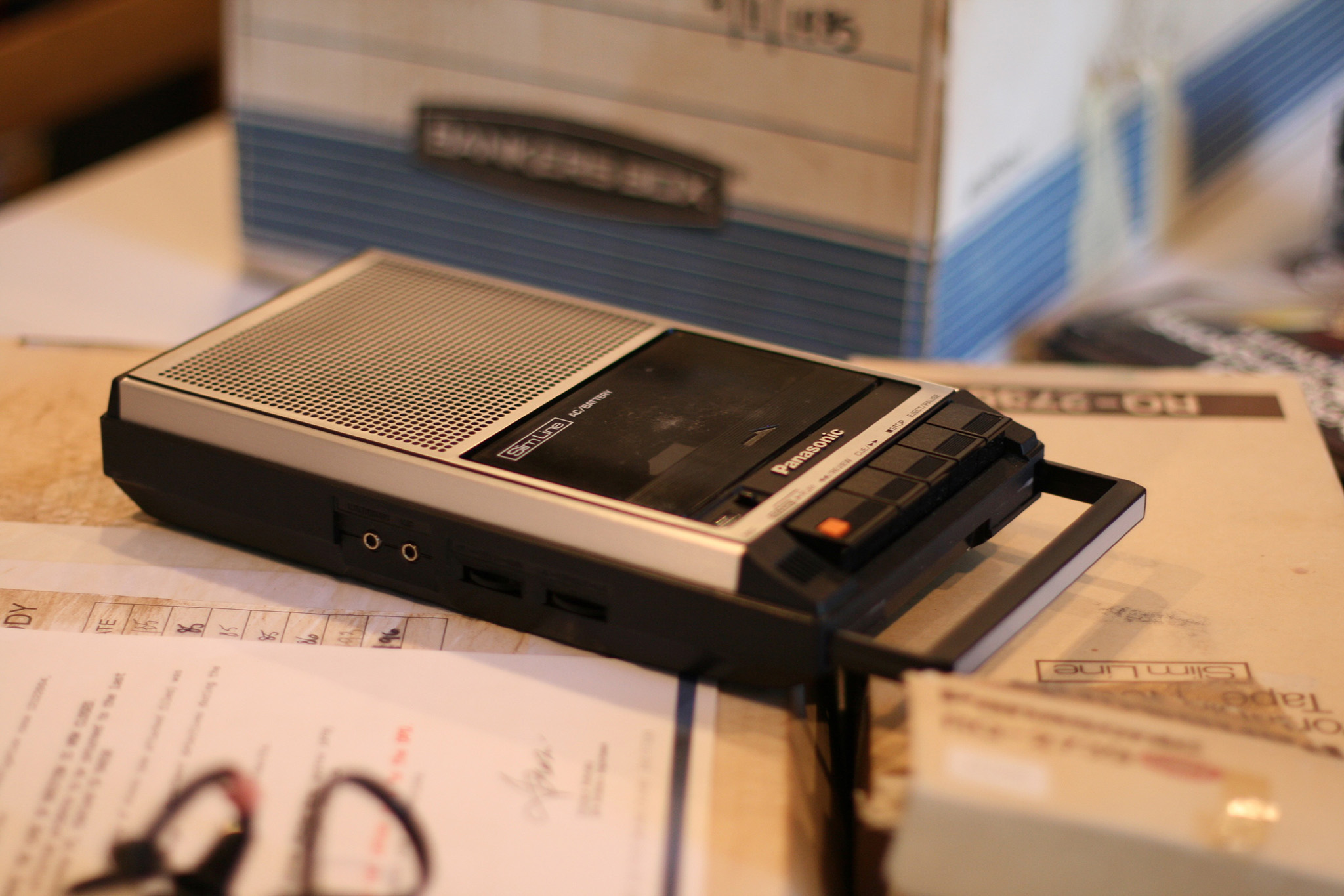 Initially overwhelmed with everything they discovered, the kids then started reviewing notes, opening the Ouija board, and examining the cassette tapes. One cassette was loose from the rest of the stack and labeled “Listen to this first”. Our son figured out how to set up the cassette player and then he struggled for a few minutes to put a tape in before getting it to play.