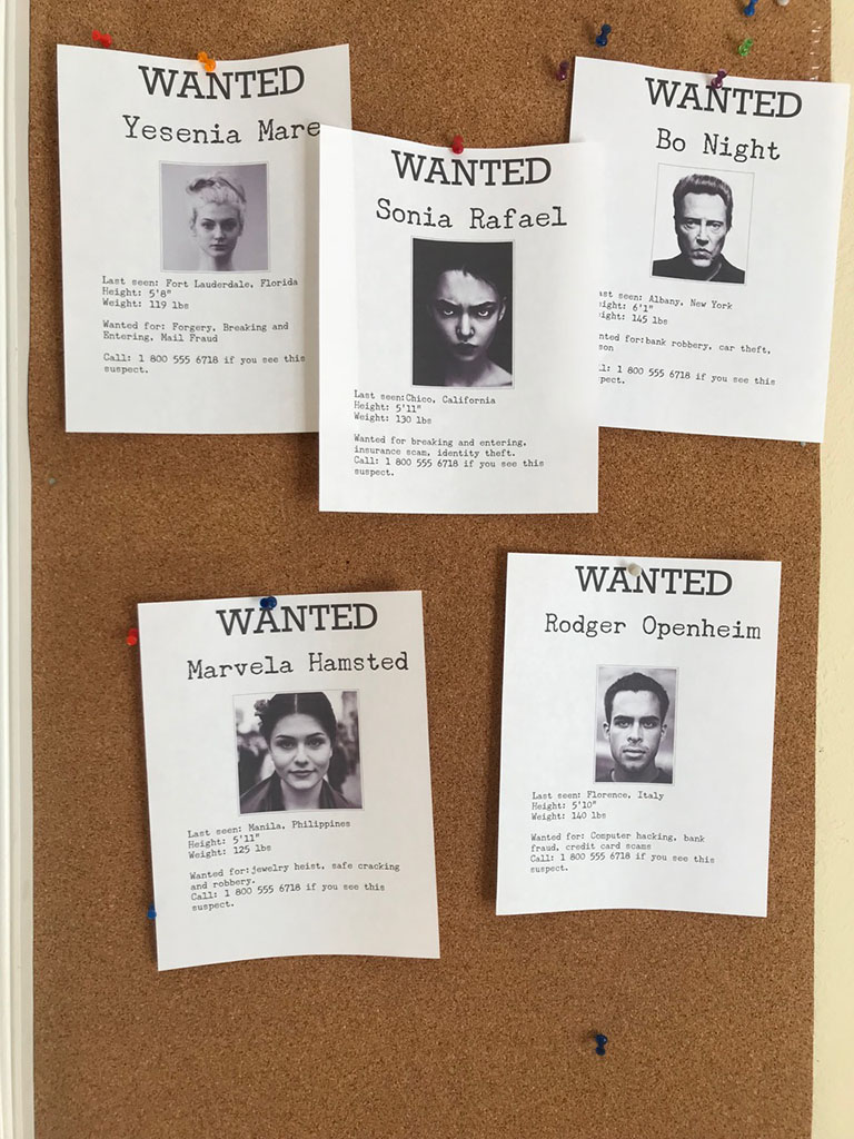 As they arrived, they found a computer terminal on a table and the walls covered in wanted posters.