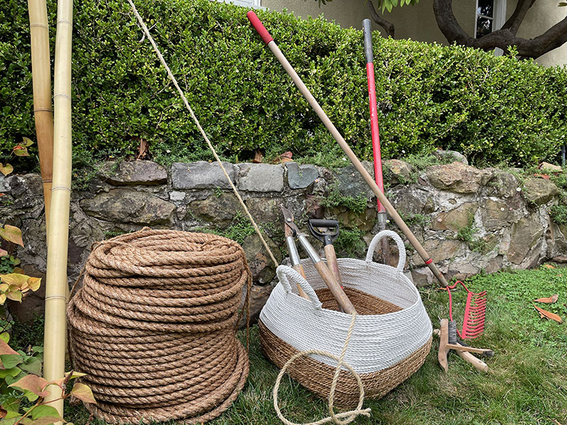 I spent a few evenings on Ebay and found an old US Army canvas pup tent, and a period, non-functioning radio. The tent arrived first, and that's when I discovered that the tents come in halves, and I had ordered only half a tent. I found a second tent, with both halves and ordered that, too. I sourced 80 feet of 2 inch diameter bamboo and a spool of 3/4 inch manila rope, which unfortunately only came in 600 foot lengths. The rope arrived on time, but the bamboo did not. After several days of waiting, I started a trace with FedEx to find the lost package, and magically it showed up the following day, which was only four days before Halloween.