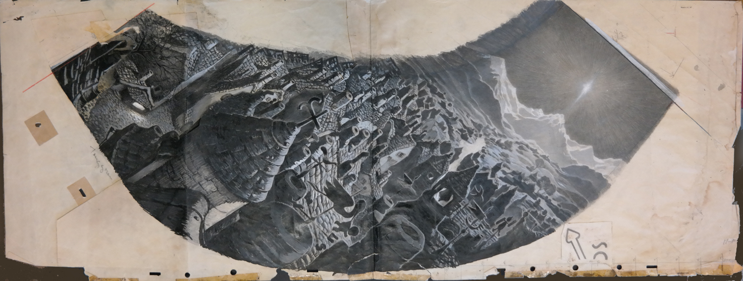 To reach the scale I wanted, I imagined a display across our entire front yard that would dynamically adjust its perspective for the people viewing it. However unlike the Mandolorian where there is a single camera viewing the scene, here there would be multiple viewers and no one perspective would be correct. As a solution I recalled the background painting used for the opening shot in the Disney film Pinocchio.