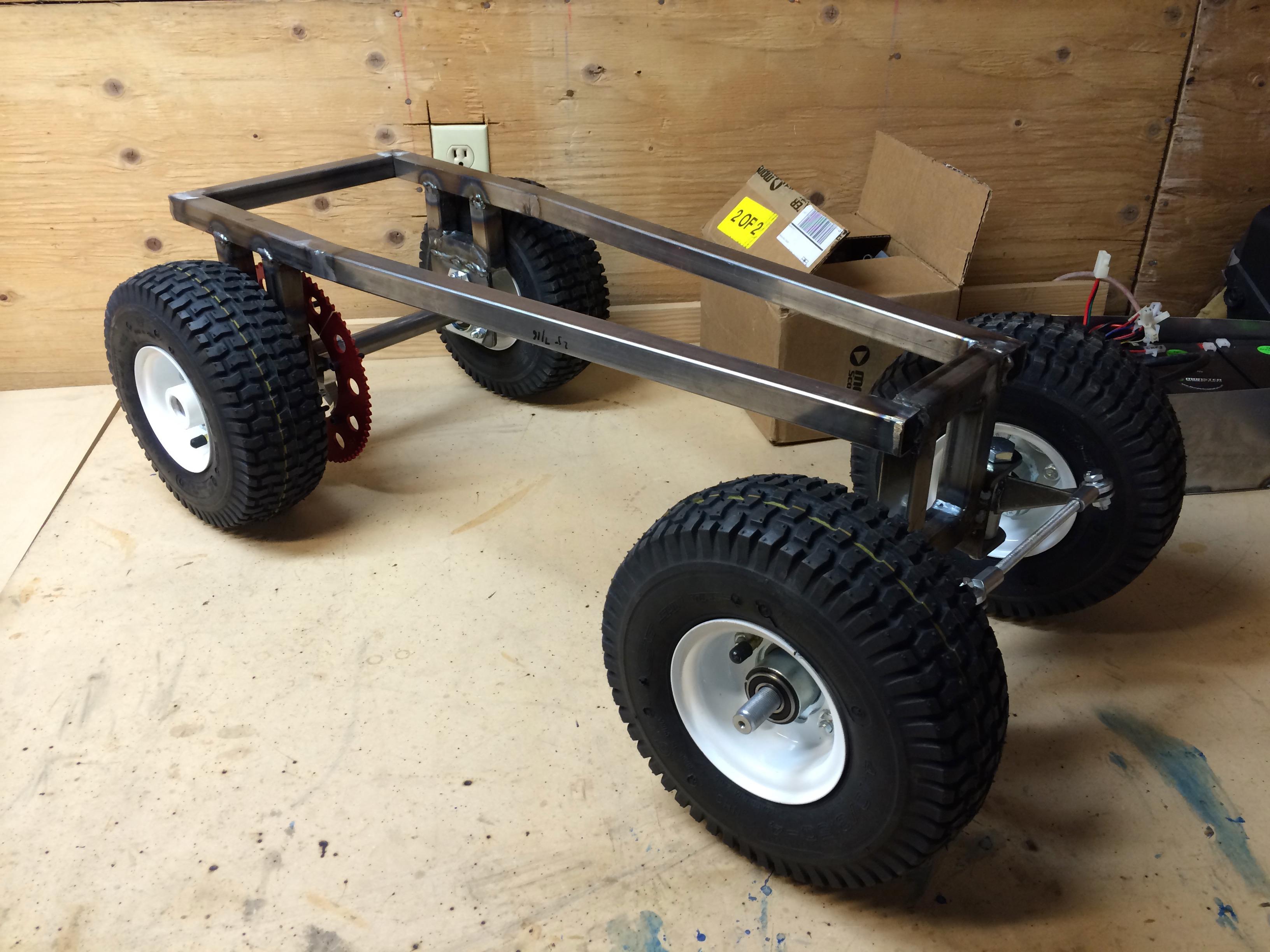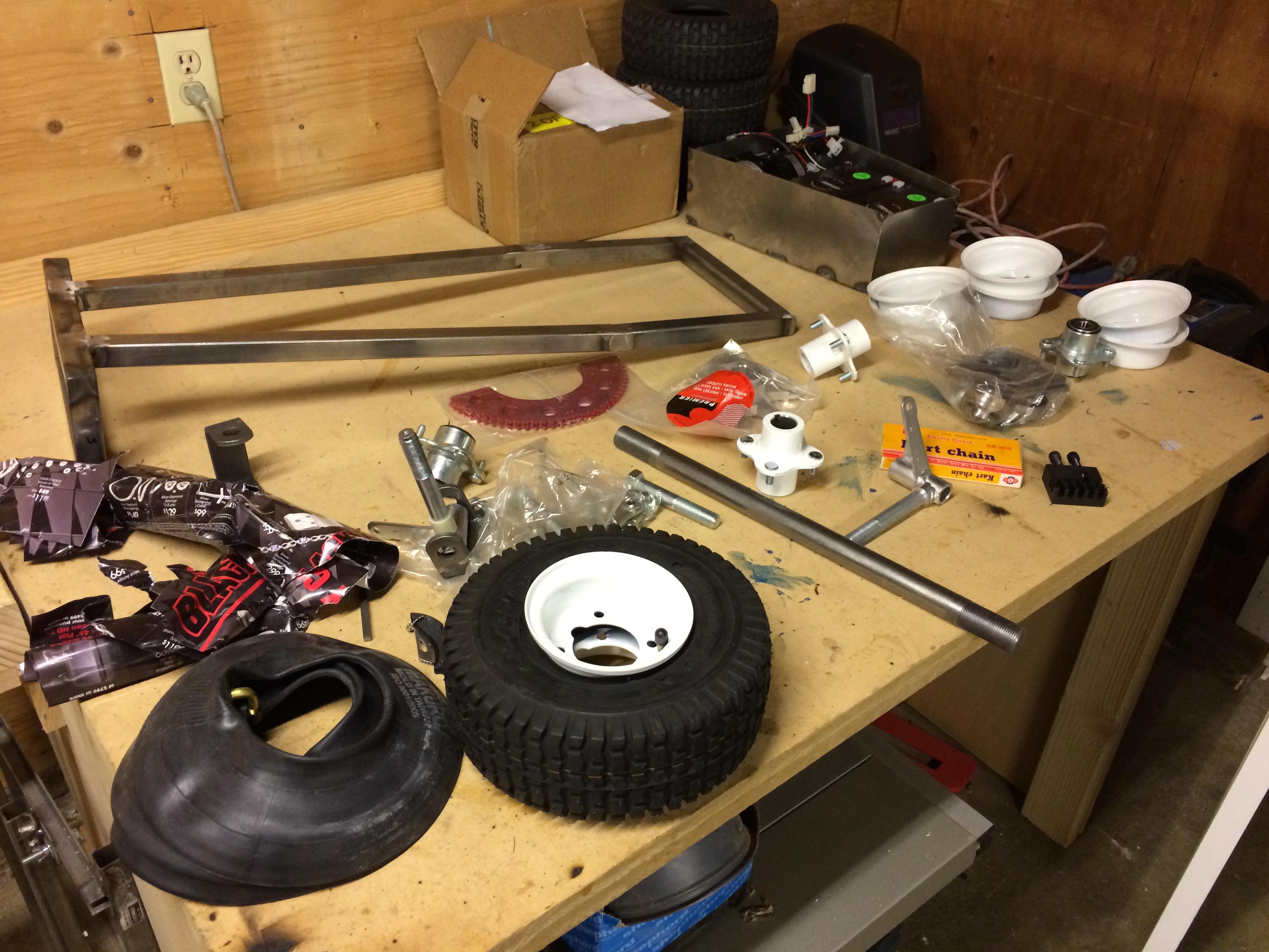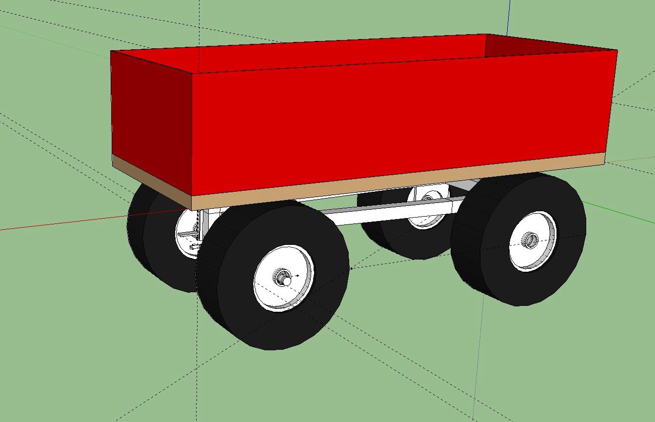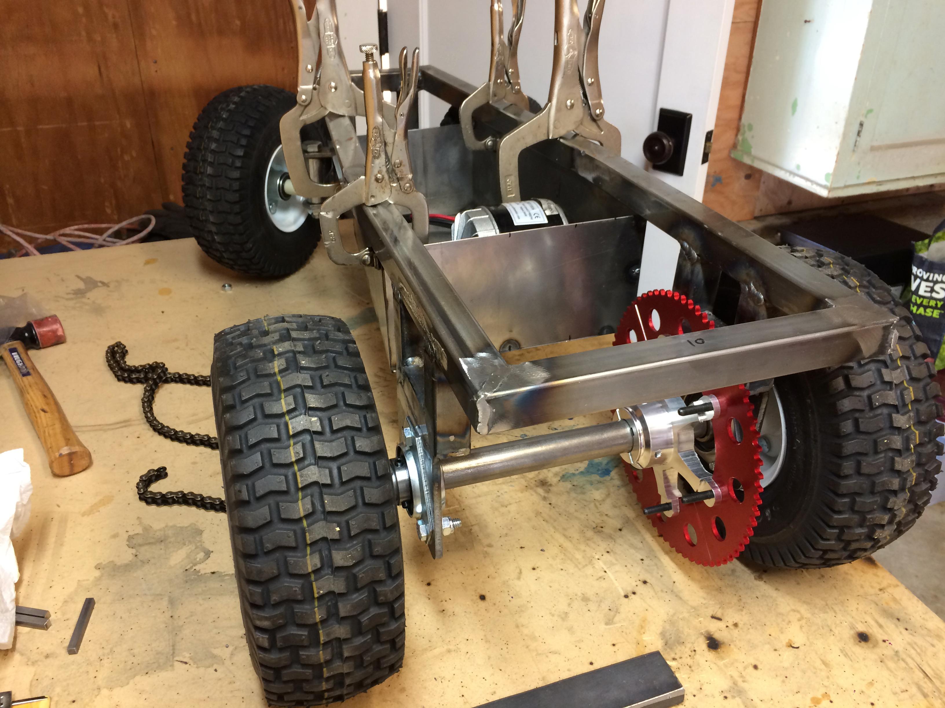 Our kids were getting older and heavier and pulling them back up the hill from Saturday Farmers Market was proving tough. I converted their Radio Flyer wagon to an electric drivetrain complete with rechargable batteries and a thumb controlled throttle on the handle for easy use.